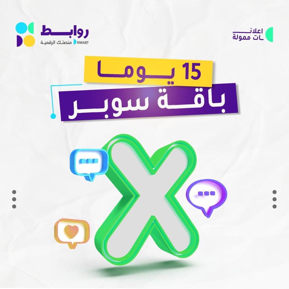 نقدم لك باقة حملات إعلانية على موقع X لمدة 15 يومًا عبر منصتنا الإعلانية الرقمية روابط – باقة مصممة خصيصًا لزيادة ظهورك وتحقيق نتائج ملموسة خلال أسبوعين فقط.